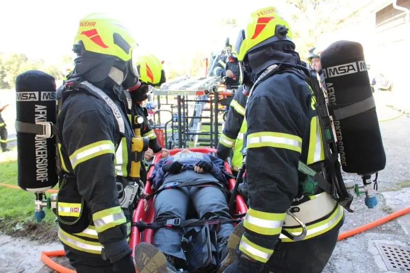Durch 8 eingesetzte Atemschutztrupps konnten aus der stark verrauchten Garage rund 10 vermisste Reitschüler, welche von der Feuerwehrjugend Wolfsgraben dargestellt wurden, gerettet werden. Durch einen Atemschutztrupp im Korb der Drehleiter konnte ein Kind sowie mittels Rettungstrage eine schwer verletzte Frau aus dem Obergeschoß befreit werden.