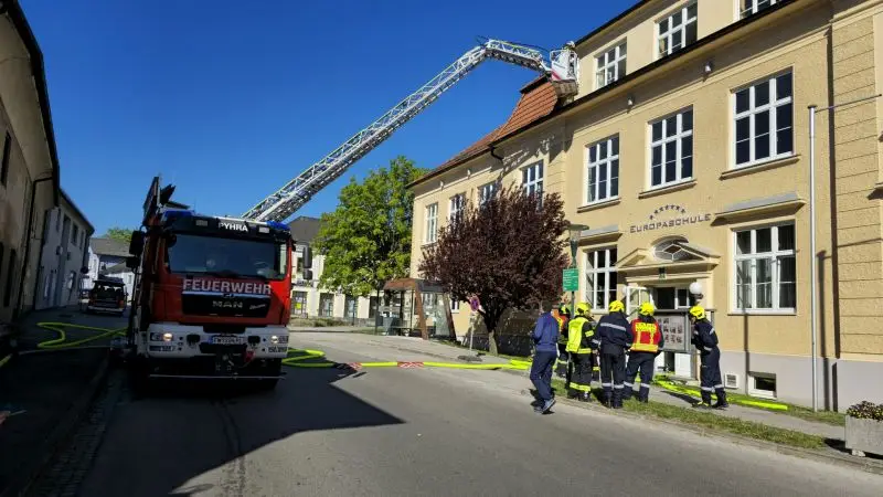 Bei der Ankunft der Feuerwehren hatten die meisten Schülerinnen und Schüler bereits das Gebäude verlassen. Während der erste Atemschutztrupp im Gebäude nach den Vermissten suchte, trafen auch die Kameraden aus Perersdorf, Obertiefenbach und Wald, sowie die angeforderte Drehleiter der FF St. Pölten-Stadt ein. Diese führten über einen zweiten Zugang einen weiteren Löschangriff durch, bzw. stellten eine zusätzliche Fluchtmöglichkeit aus den Obergeschossen her.